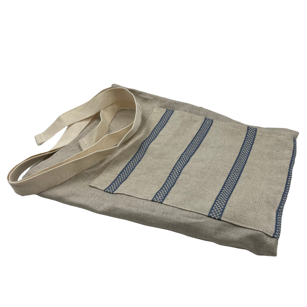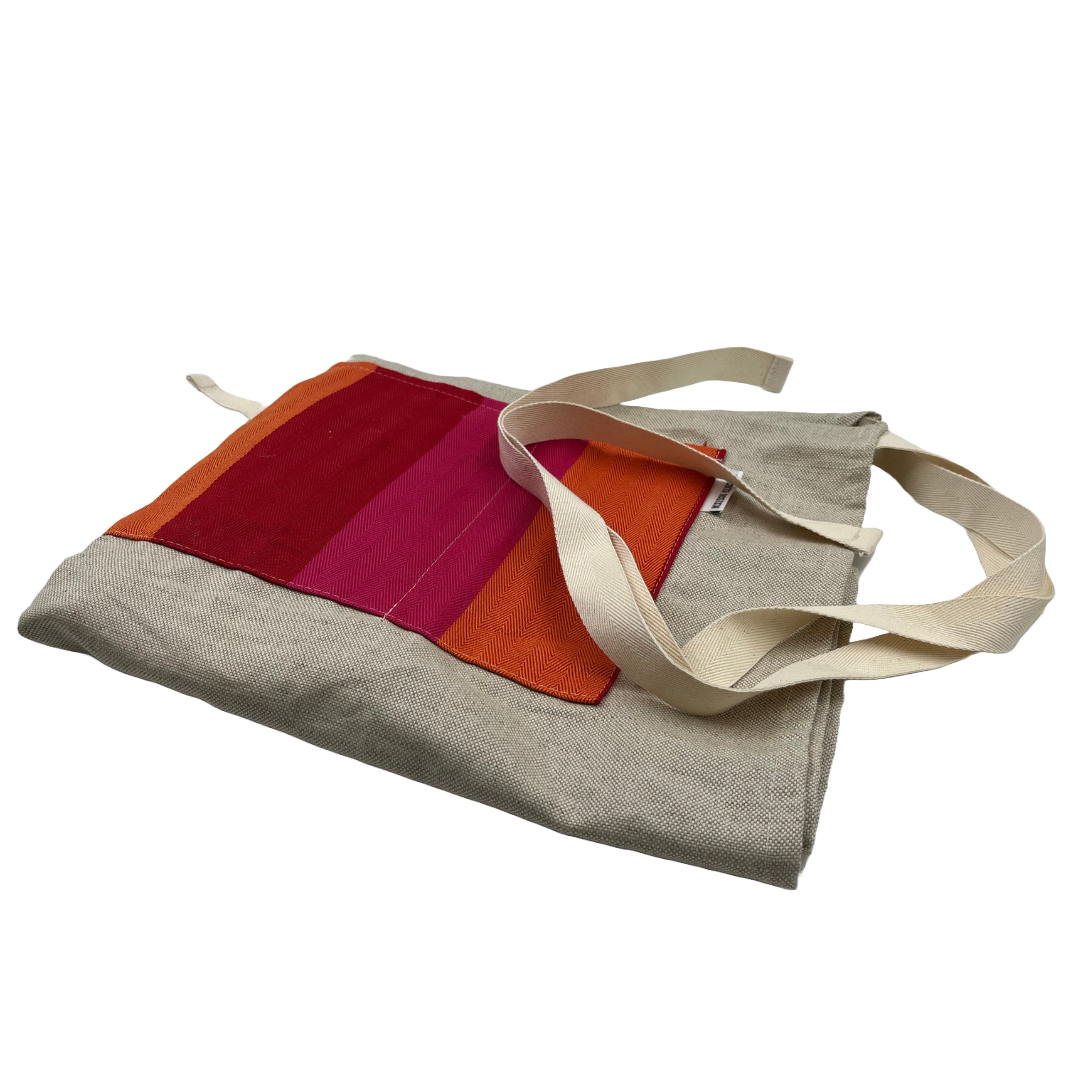 These aprons bring a beautiful pop of colour to your kitchen! Beautifully woven, cut, and sown in Lancashire. Available in red or blue.