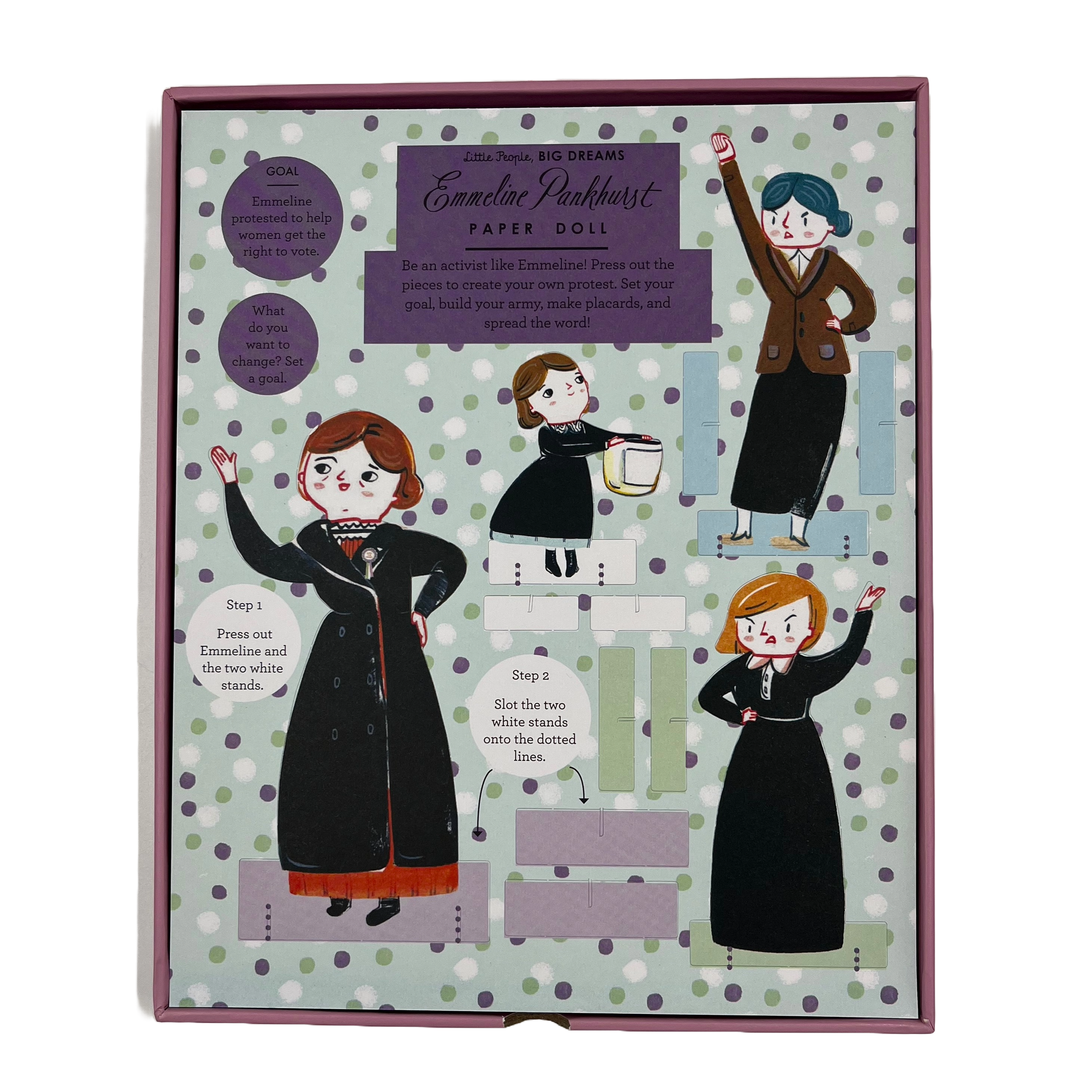This set also includes three sheets of card with press-out pieces. This includes pieces to make figures and prompts to create your own protest!