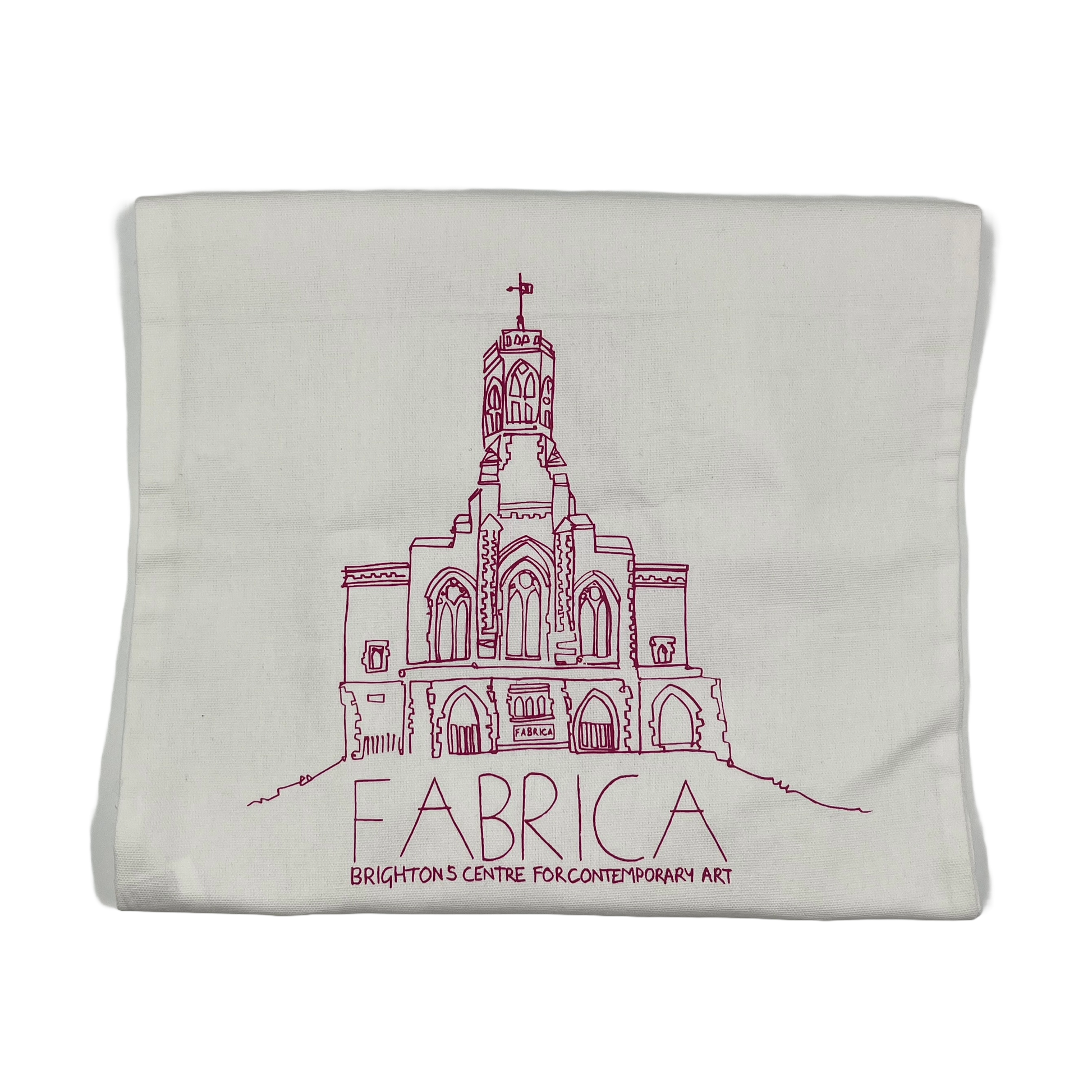 Brighton-based artist Katty McMurray, founding member of Two Kats and a Cow Gallery on Brighton seafront, has drawn the distinct façade of Fabrica's Ship Street entrance for the design on this organic cotton tote bag.