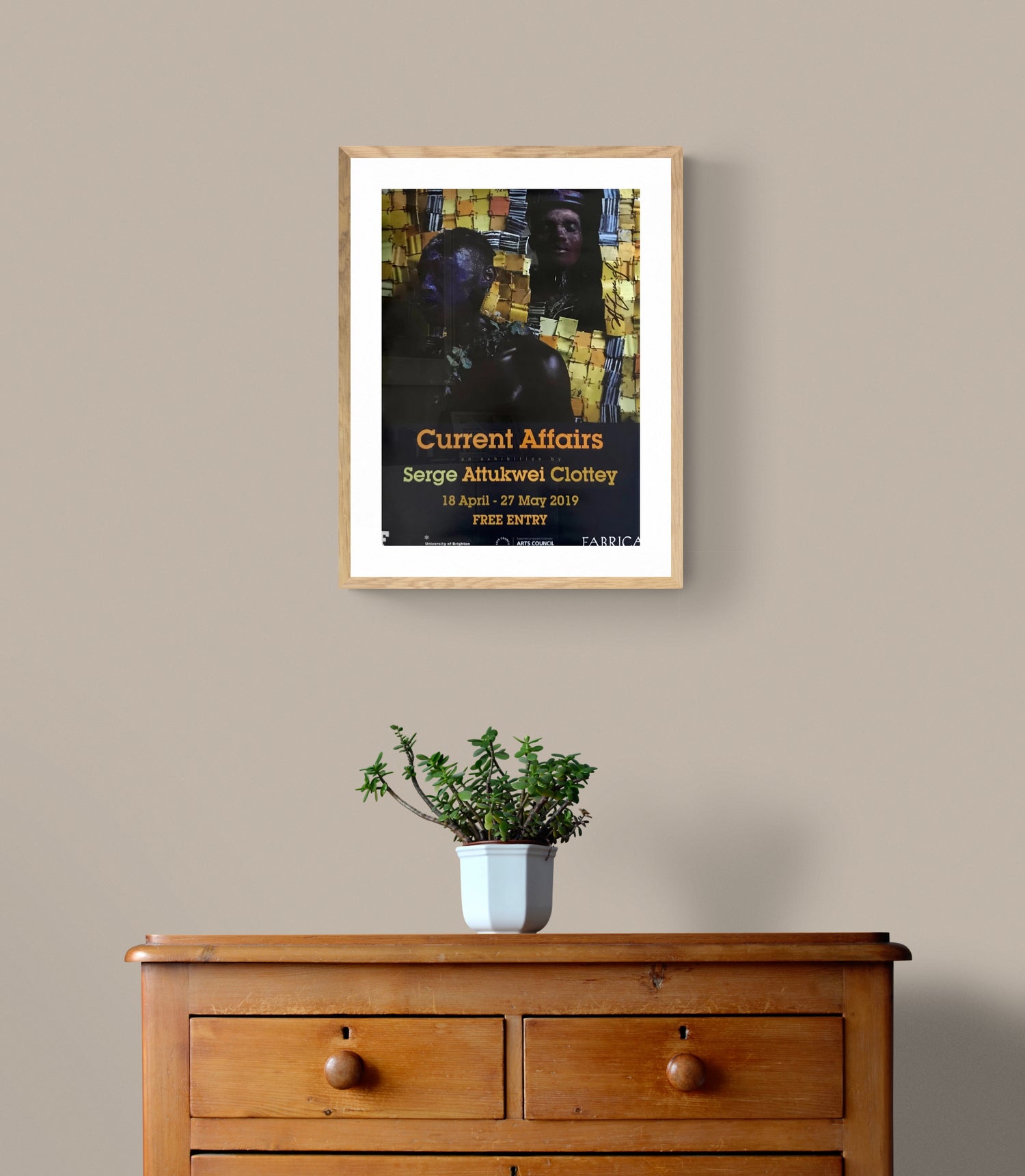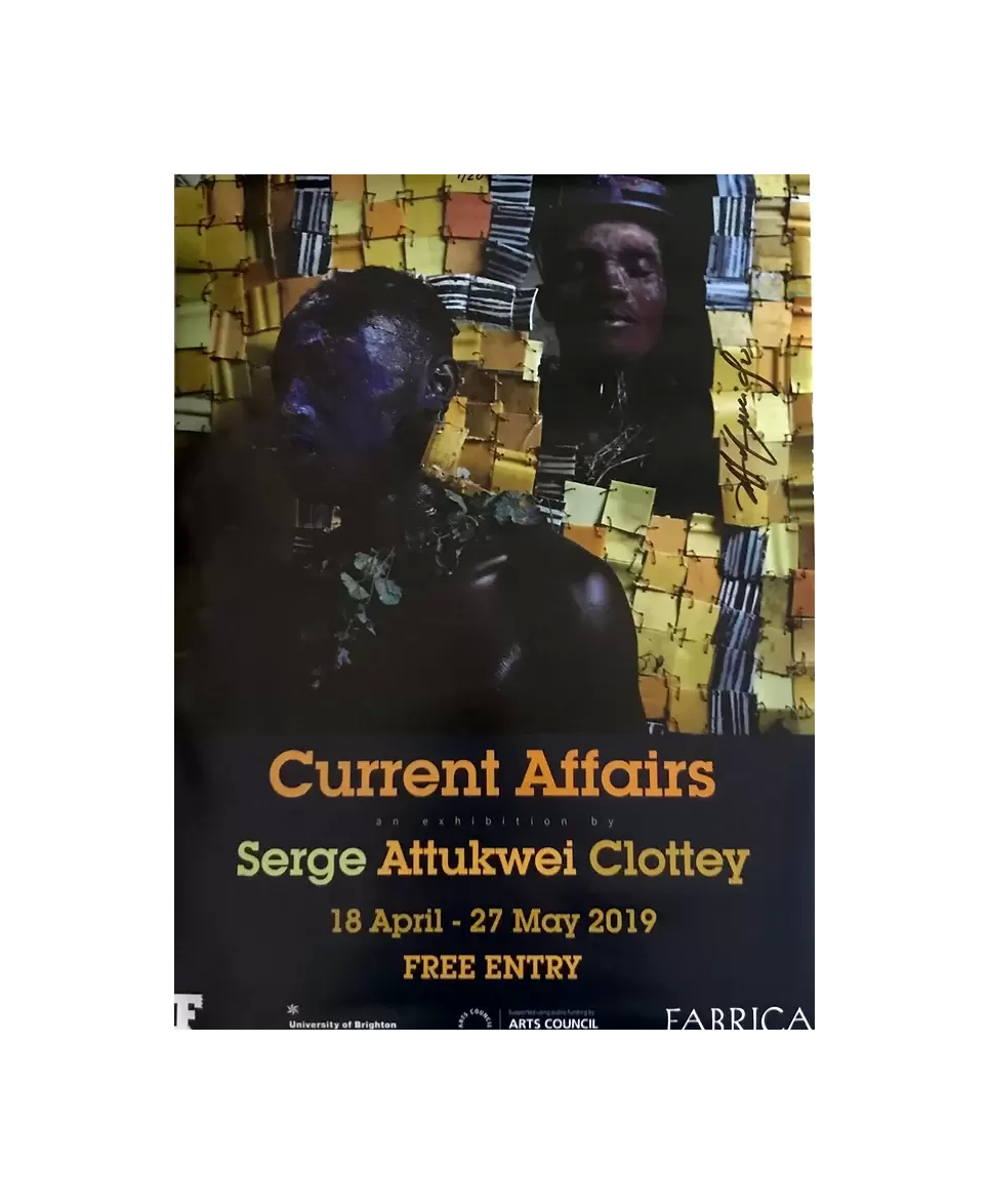 Signed poster from the exhibition Current Affairs by Serge Attukwei Clottey at Fabrica in 2019. Signed and numbered in recto by Serge Attukwei Clottey with a Fabrica stamp in verso.