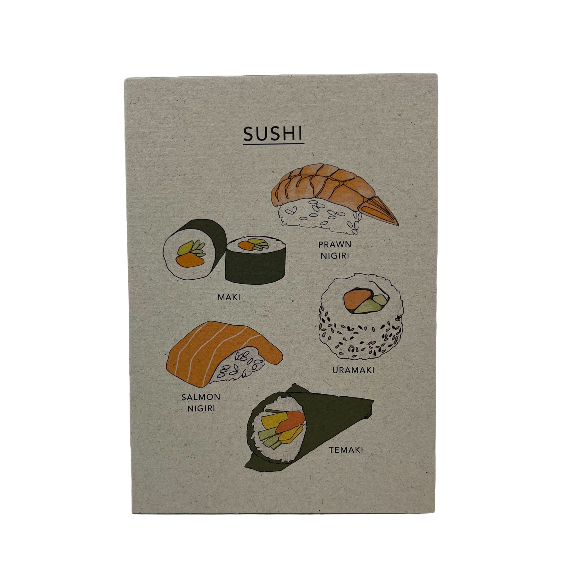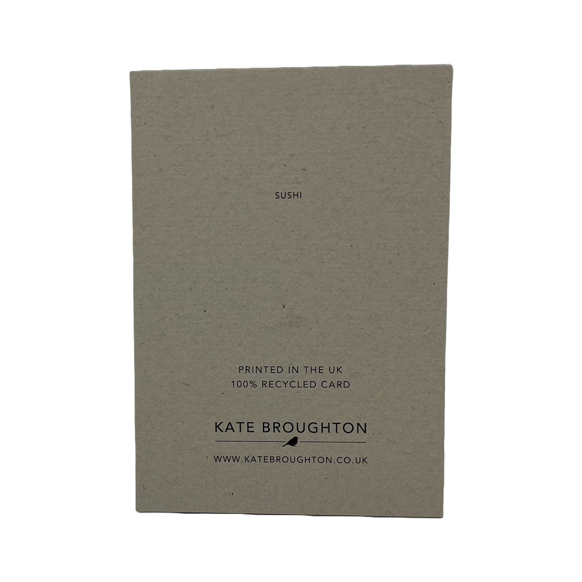 Crafted from recycled materials, this card not only celebrates artistic expression but also promotes environmental sustainability. Ideal for gifting, it’s a thoughtful choice for any occasion and perfect for sushi lovers.