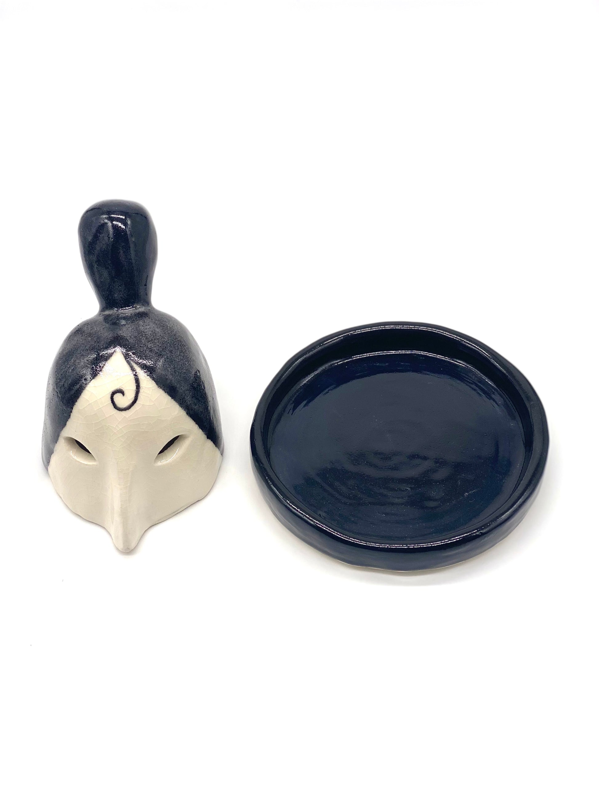 This Swimming Lady incense holder has been made by Brighton based ceramicists Maya Doyle otherwise known as Uschie. Maya is well known for her colourful and quirky creations and this lady is no different. The tray is perfect for a cone shaped incense or LED tea-light.